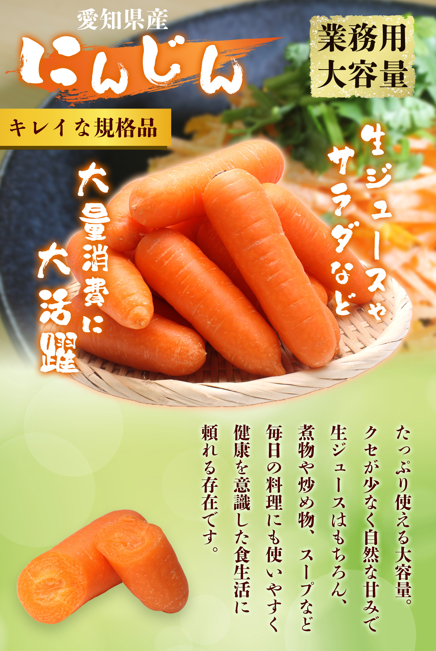 きめが細かく、生のままでも使いやすいため、にんじんジュースにも向いています。