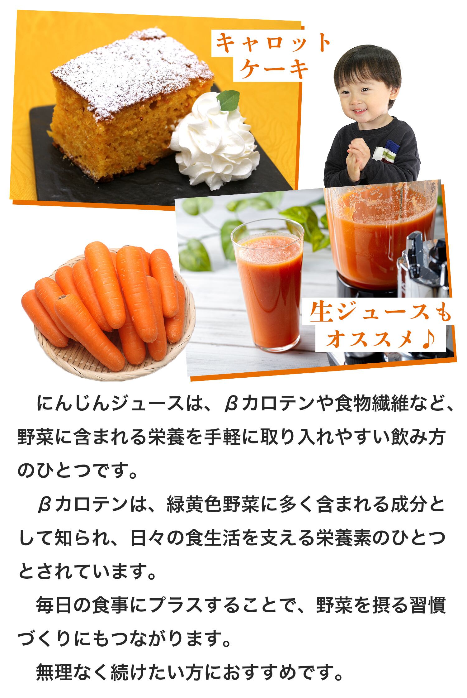 にんじん特有のクセ、えぐみが出にくく、やさしい甘みが感じられるのも特長のひとつ。